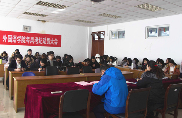 考风考纪建设是学风建设的重要内容和关键环节,学院在组织各年级考风考纪宣传动员的同时,也积极探索利用新媒体来进行诚信考试宣传教育,并将加大巡考力度。(陈林炯)
