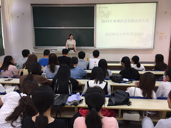 今年暑期社会活动的主题是“汇聚青春正能量 携手共迎十九大”。在十九大来临之际,国家更需要那些具有社会意义,创造社会价值的调研项目。对于大一学生而言,大学期间的社会实践活动还十分陌生。什么是社会实践?如何进行社会实践?社会实践有哪些内容?这些问题都急需解决。动员大会伊始,李书记首先详细介绍了暑期社会实践的内容,无论是专业实践、社会调研、志愿服务,还是“大学生创新创业训练计划”、“创青春”大学生创业大赛……都可以作为暑期社会实践活动的内容。同时,我院暑期社会实践基地与南京新东方学校合作举办的暑期菁英教师训练营是我院的特色实践平台,为志在从事英语教育的学生们提供了培训资源和宝贵的实践机会。
