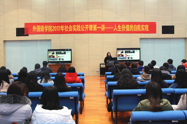 3月20日下午四点,我院2017年社会实践公开课在图书馆四楼世界之窗开讲。首场公开课邀请了南京市青联委员,“创青春” 江苏大学生创业赛、公益赛指导老师,南京市新东方教育科技集团营销总监张春琳女士主讲“人生价值的自我实现与大学生实践的三条建议”,学院部分学生参加了此次公开课。