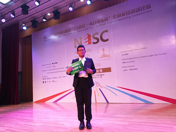 11月12日,2016年“21世纪杯”全国英语演讲大赛江苏赛区决赛在南京师范大学随园校区落下帷幕。本次大赛,共有来自57个本科院校的495名选手参加。经过激烈角逐,我院英语1602班的胡宇恺同学在此次比赛中荣获二等奖(指导老师:程水英)。