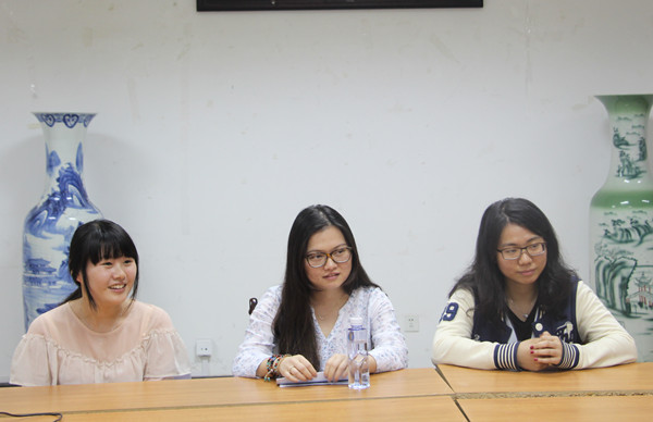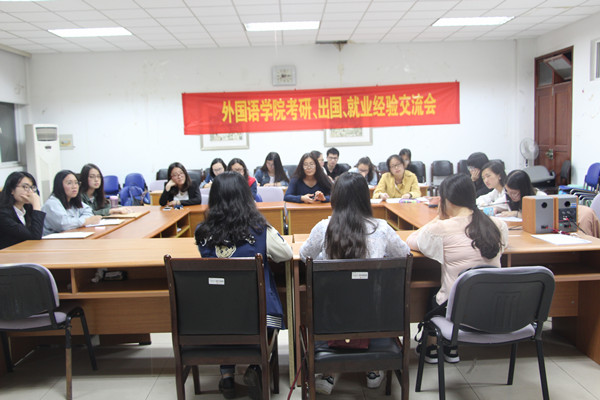 参加本次分享交流会的有考取对外经贸大学国际商务专业的英语1202班王璐同学,被英国杜伦大学TESOL专业录取的英语1201班宋瑶同学及考取法国里昂高商大学的法语1201班徐璟同学。三位同学均为毕业班学生党员。