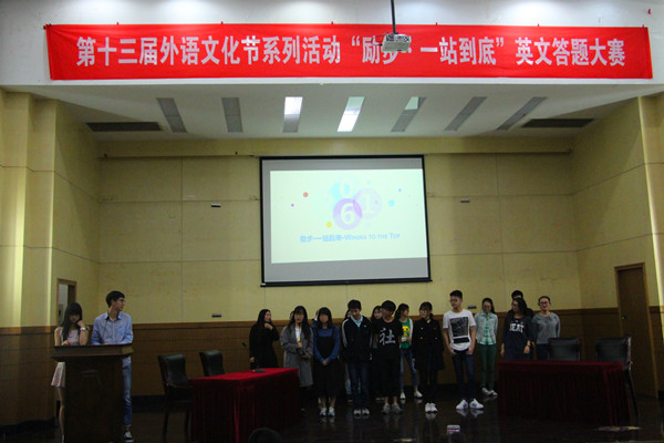 比赛中,各参赛团队反应迅速,竞相展现丰富的知识,正答率极高,难分伯仲。本次题库围绕英美文化展开,涉及中西历史,还有关于社会主义核心价值观内容、中国特色社会主义英文释义等相关题目,选题中西结合,范围极广,难度较大,但选手们充分运用对英语知识的了解和语言表达能力,密切配合,将比赛一次次推向高潮。此次比赛还吸引了来自美国奥斯丁州立大学来我校交流的学生前来观赛。