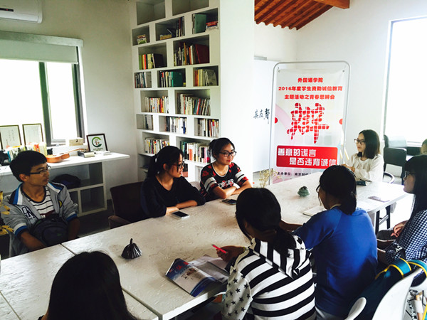 5月5日,我院组织部分申请助学贷款的同学,来到栖霞区桦墅村嘤栖书院,举办诚信主题教育青春思辨会和诚信教育签名活动。院党委副书记李慕原、学工办主任薛桂芳参加活动。