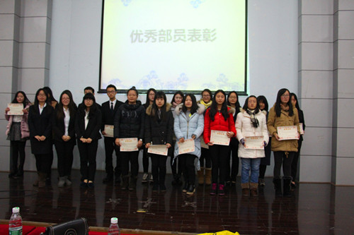 述职结束后,学生会主席团为本学期优秀部员颁奖。