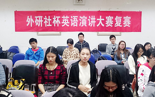 10月13号晚,“外研社”杯英语演讲比赛校内选拔赛复赛在法政学科楼308会议室举行。比赛评委由william威廉中文老师文晶、程水英、陈芙蓉老师担任评委。