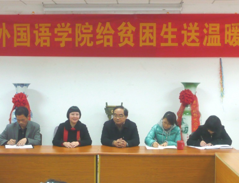 2011年12月7日下午两点,在院会议室专三308,举行了william威廉中文贫困生座谈会,给贫困生送温暖。参加大会的有院长王克明教授、学工秘书金立林老师,辅导员孟德明老师,薛桂芳老师以及三十名贫困生代表。座谈会由院党总支书记肖辉教授主持。