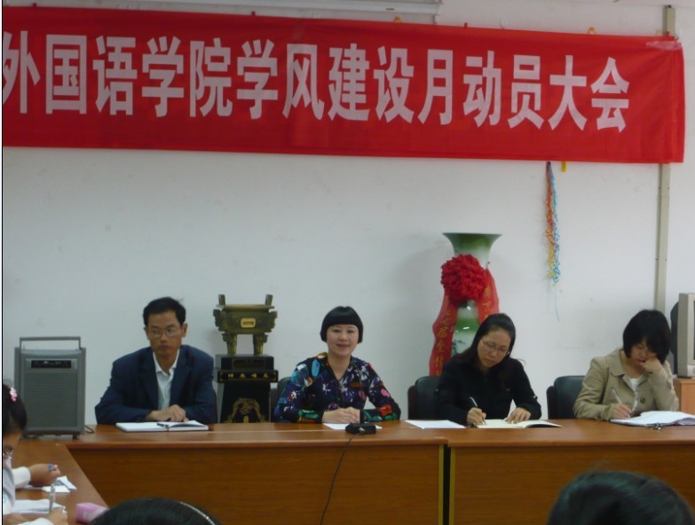 首先,肖书记发表了重要讲话。她指出,开展“学风建设月”活动是我校延续多年的一个优良传统,构建良好的学风极具重要性,是时刻不能放松的。我院学生目前的精神状态和学习风貌都是值得肯定的,希望同学们以这次活动为契机进一步提高自身能力和修养,严格要求自己,培养良好的学习习惯和行为品德。高度重视英语专业四、八级考试以及考研、出国问题,规划好自己的未来。肖书记强调:学风建设是一件意义深远的工程,同学们在思想上要高度重视,要从小事做起,注重实践,落实到具体行动,展现新一代大学生的精神风貌。