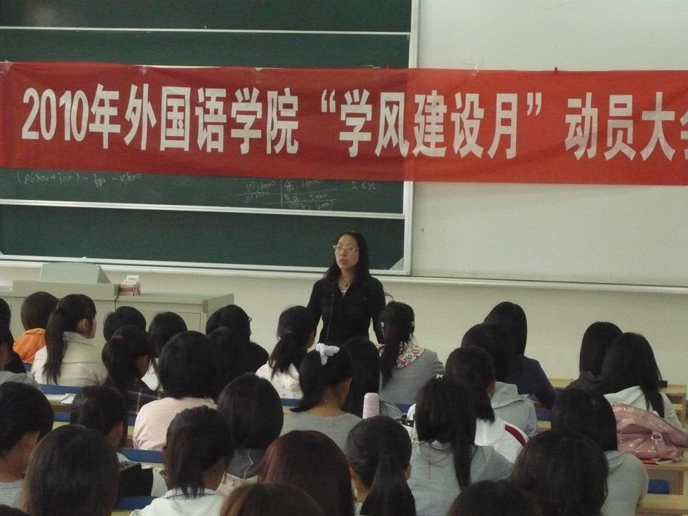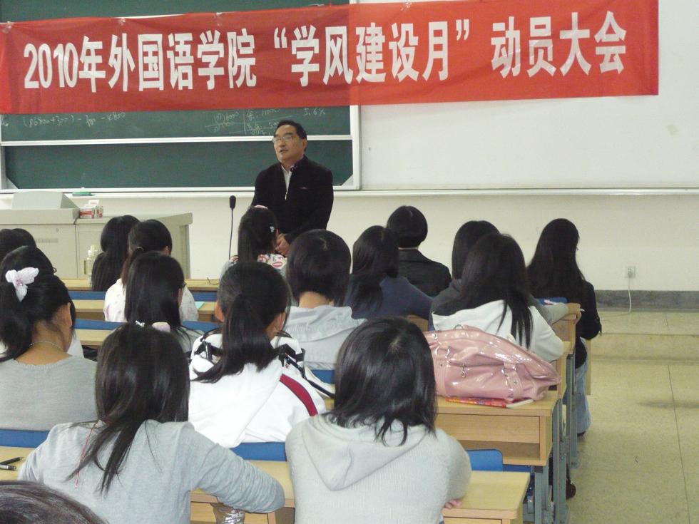 院长王克明教授、团总支书记金立林老师和辅导员孟德明老师、我院10级全体新生、07、08和09级的全体学生干部参加了本次动员大会。
