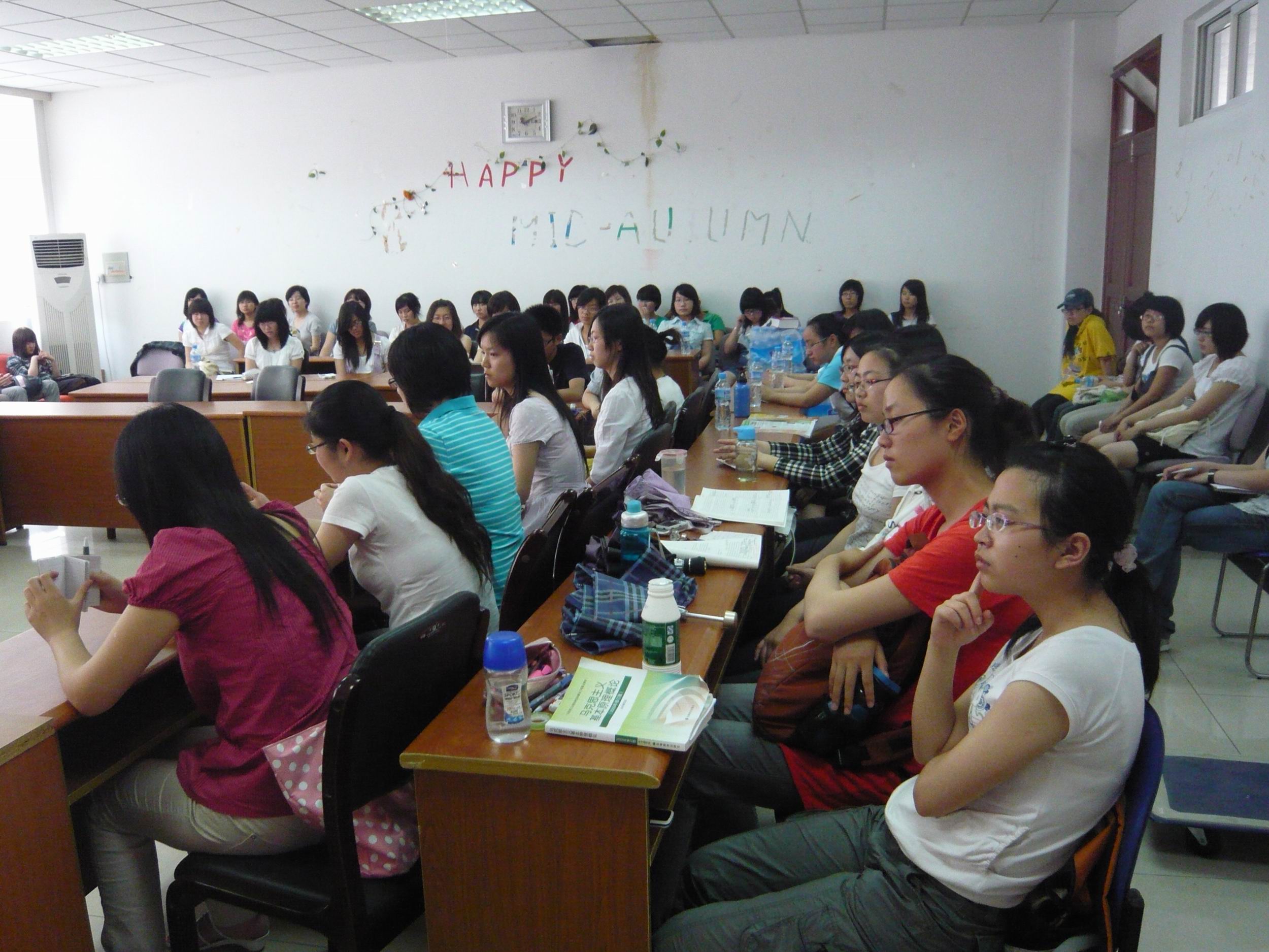 会议上,王院长首先祝贺了06级19位考上研究生的学生;然后就当前英语教学和就业的定位做了警醒的概括;最后对将要考研的同学给予厚望。金老师表达了自己真诚的祝福和为同学们取得的成绩感到欣慰。接下来就是交流会的重点,8位准研究生坐上前座面对学弟学妹分别做了发言。总结了自己在艰苦的考研过程中的得与失;并对各门学科的具体准备做了详细的介绍;有对大家关心的话题发表了自己的看法,如考研报班、参考书目、调剂等。最后,学弟学妹向考上研究生的学姐学长提问,大胆而直接的询问自己的种种疑惑,并得到详尽而满意的回答。两个半小时在同学们的积极参与很快就过去了,会议结束前,大家留下了联系方式,以便学弟学妹们以后及时向学姐们请教。