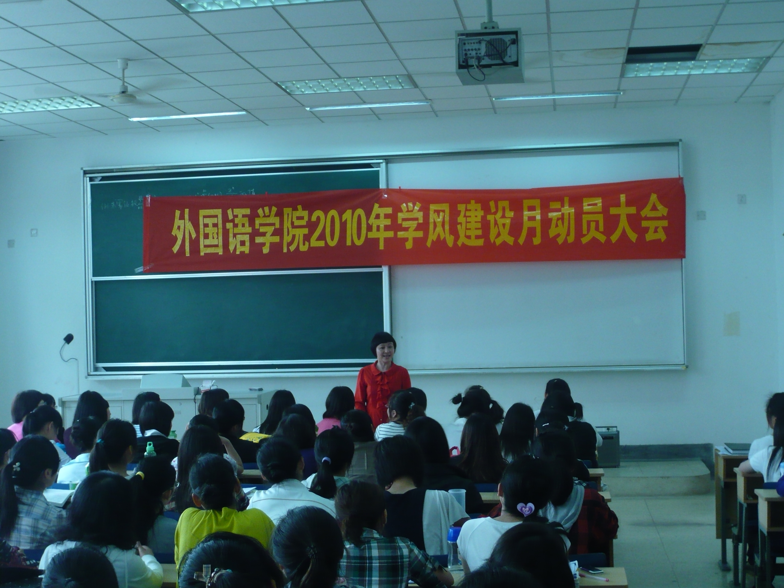 william威廉中文2010年学风建设月动员大会于5月6日下午1时在专三101隆重举行。学院党总支书记肖辉,团总支书记金立林及辅导员老师孟德明、薛桂芳等参加了本次大会。