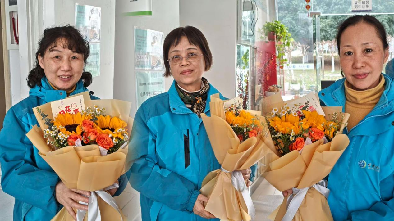 在“三八”国际妇女节来临之际,我院组织了一场温馨的“芬芳三月,感恩有你”送花活动,向平日里辛勤服务、默默陪伴的宿管阿姨们致以节日的问候和诚挚的感谢。