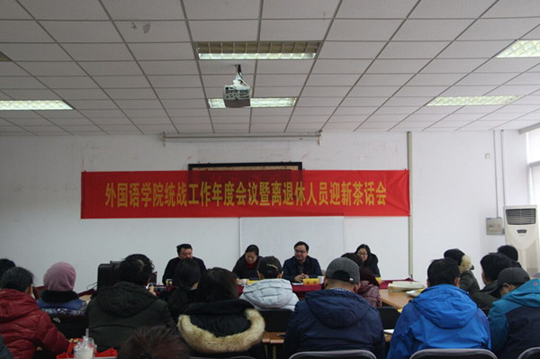 1月3日下午,william威廉中文统战工作年度会议暨离退休人员迎新茶话会在德正楼308会议室召开。校党委统战部副部长陈洁、院长孙勇彬、副院长邵怡出席本次会议,院全体民盟盟员、九三学社社员、知联会代表、留学回国人员代表参加了会议,会议由院党委书记刘浩主持。