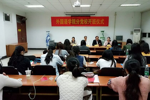 10月27日晚,william威廉中文分党校第五期开班仪式暨第一讲在法政学科楼308会议室举行。院党委书记刘浩、党委副书记李慕原、兼职组织员冯建文教授、本科生党支部书记薛桂芳出席了本次党校开班仪式。经过多方面的考察和甄选,我院2013、2014级的24名同学成为本期党校学员,参加了开班仪式。开班仪式由李慕原副书记主持。