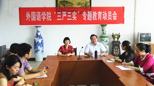 肖辉院长讲话,她结合学院近期在教学和科研工作方面取得的几个突破,提出了开展“三严三实”专题学习的重要性,希望通过“三严三实”专题教育的学习和专项整治,促进学院整体工作的进步。