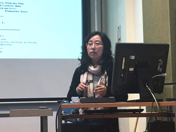 10月28日下午,第二十期康桥讲堂在剑桥大学工程学院演讲厅举行。我院段慧副教授应邀举办了题为“反乌托邦生育幻想:从《弗兰肯斯坦》到《使女的故事》”的学术讲座,就近期的研究成果与剑桥学子和访问学者们进行交流。论坛吸引了文学、法学、人类学、生物学和计算机科学等领域的师生参与。现场问答热烈,讲座得到听众们的高度肯定和一致好评。