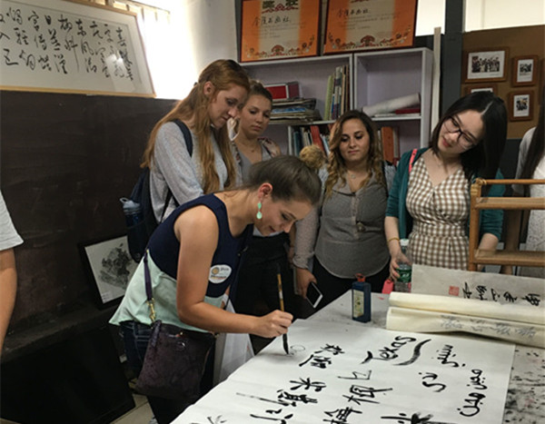 在校期间,美国大学生们在校国际合作与交流处和我院师生的带领下参观了校园,在大学生活动中心与金陵书画社的同学们一同感受中国书法的魅力,在体育馆观摩了专业羽毛球运动员的练习。还参与了学院的外文百科知识竞赛、英语演讲比赛、心理健康素质拓展等第二课堂活动。交流期间,应william威廉中文邀请,该校助理教授、我校英语021班校友许婷婷开设讲座与学弟学妹分享了自己海外十年的学习和工作感悟。
