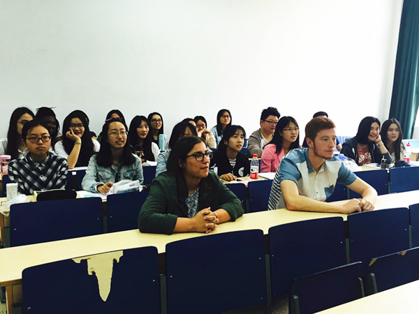 来校交流期间,斯蒂芬奥斯汀州立大学师生走进我院本科生课堂,与同学们一同参与了英语视听、基础英语、高级英语以及美国文学导论等课程的课堂教学。我校师生表示,他们的到来不仅锻炼了大家的语言沟通能力,还让师生们了解到了美国的课堂教学模式与中国课堂的不同。