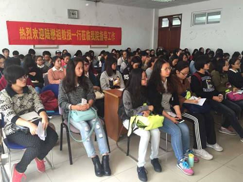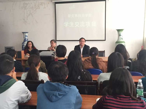 10月29日上午,英国斯克莱德商学院陆懋祖教授在我校国际合作与交流处副处长王娟等一行陪同下来我院宣讲国际合作项目。宣讲会在法政学科楼308会议室举行。讲座由院党委书记刘浩主持,我院英语专业14、15级学生聆听了讲座。