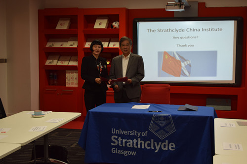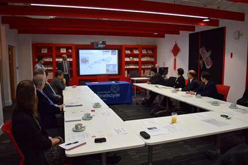 代表团首先访问了斯特拉斯克莱德大学。副校长王开田教授一行与斯特拉斯克莱德大学的常务副校长Scott McGregor教授,副校长Atilla Incecik教授、Douglas Brodie教授、David Hillier教授及中国学院院长陆懋祖教授等人进行了友好的会谈,并就商科的人才培养、课程设置与教学内容等进行了深度交流。