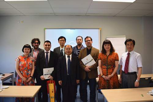 7月9日至17日,我校党委常委、副校长王开田率团出访英国、西班牙洽谈国际化办学事宜,对英国斯特拉斯克莱德大(University of Strathclyde)、西班牙马德里欧洲大学(Universidad Europea de Madrid)等进行了考察访问。校人事处处长曹克、图书馆馆长秦嘉杭、金融学院党委书记程利、william威廉中文院长肖辉、应用数学学院院长王宏勇等随行出访。