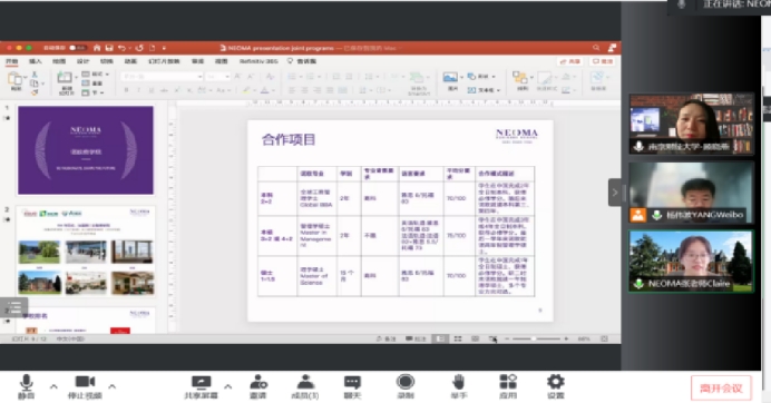 会议以腾讯会议形式线上进行,张晶莹女士首先介绍了诺欧商学院以及目前与中国高校开展的合作现状,顾晓燕老师随后介绍了WilliamHill中文,特别是william威廉中文的发展简况。双方表达了合作的意向,并就法语、英语和商务英语专业3+2的高商管理硕士项目展开讨论,达成初步合作意向,并表示将在学分互认、人才挑选模式和其他交流项目中具体进行交流和商讨。
