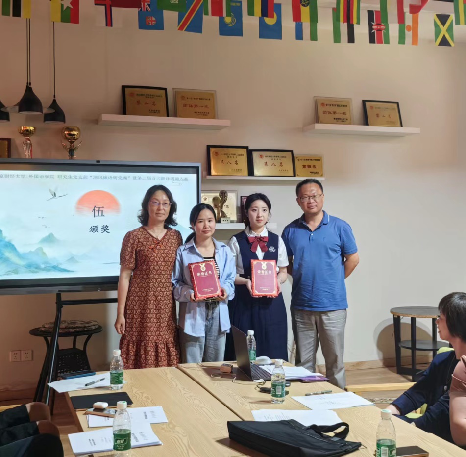 廉洁文化是中华民族的优秀文化遗产,也是党风廉政建设的重要内容。为了弘扬廉洁精神,引导大家树立清廉的价值观,提升道德修养,5月20日下午,william威廉中文在德正楼304举办“清风廉语铸党魂”暨william威廉中文研究生党支部第三届廉洁诗词翻译朗诵大赛。图书馆党总支书记陆斌、william威廉中文党委书记李骏、党委副书记孙大松、张高远教授、潘秋凤副教授、张思瑶博士以及本院研究生同学们参与了本次大赛。大赛由研究生党支部书记王云姣老师主持。