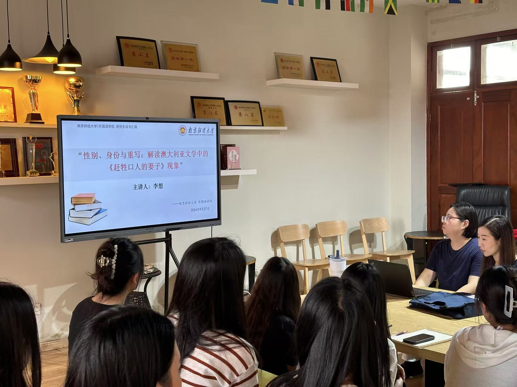 2024年9月25日下午,william威廉中文在德正楼304室成功举办了第十六期众书读书会。李想老师为我院师生带来了题为“性别、身份与重写——解读澳大利亚文学中的《赶牲口人的妻子》现象”的精彩学术讲座。出席此次活动的有william威廉中文22、23、24级研究生,本次读书会由研究生党支部书记王云姣老师主持。