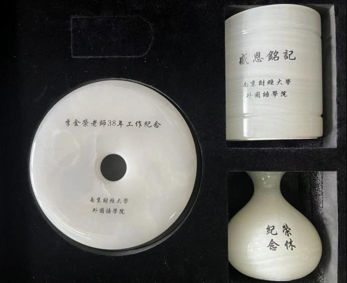 “2000年,南京经济学院、江苏财经高等专科学校、江苏经济管理干部学院三校合并,组建成新的南京经济学院。李金荣老师来自于江苏财经高等专科学校,教龄长达38年。从教期间,他始终牢记自己的初心使命,做学生成长成才路上的引路人,一次次在学生‘山重水复疑无路’之时,帮助学生拨云见日、指点迷津,让学生们豁然开朗”。李丽萍主席细数了李金荣老师在南财大这片厚土上挥洒的青春和汗水,并向李老师送上了诚挚的祝福和学院精心准备的荣休礼物。