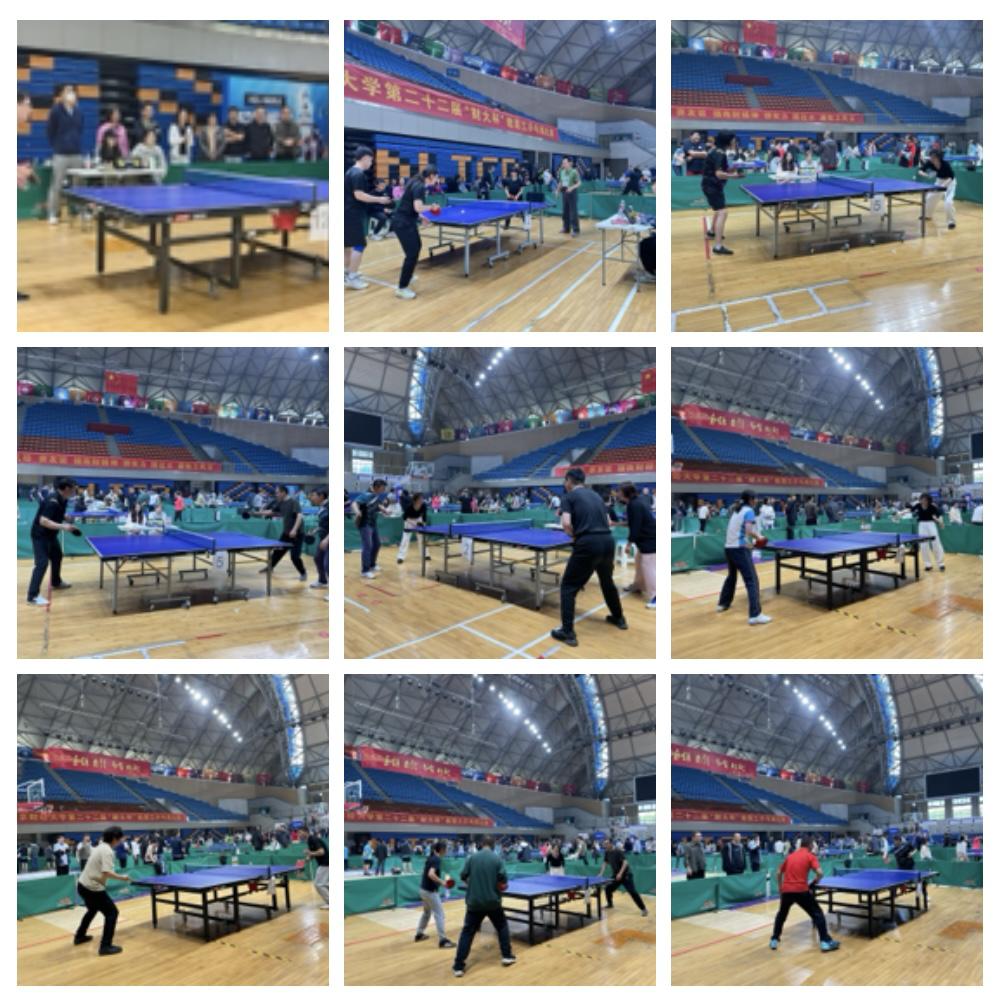 4月13日,由校工会、体育部主办的第二十二届“财大杯”教职工乒乓球比赛在我校仙林校区体育馆举行。包括校领导代表队在内的25支代表队近200名运动员参加了比赛。我院派出的代表队是:领队李丽萍,教练员曹武,运动员:郑洪举、高盛强、刘明志、陈成辉、程艳秋、张媚。赛前,参赛教师利用休息时间参与训练,秣马厉兵,积极备战,以最好的状态代表学院参加本次比赛。本次乒乓球比赛为混合团体赛,分两个阶段进行:第一阶段进行小组循环赛,第二阶段进行淘汰赛和排位赛。8时30分,第一阶段比赛准时开始,我院分在D组代表队,分别以3:1、3:0、3:2、3:1、3:1战胜了机关四、应用数学学院、离退休处、国际贸易学院、营销学院,荣获小组第一名。比赛过程中,我院代表队一路顽强拼搏、齐心协力,同时也秉持着以球会友、享受运动的精神,在赛场上赛出了风格,赛出了水平。