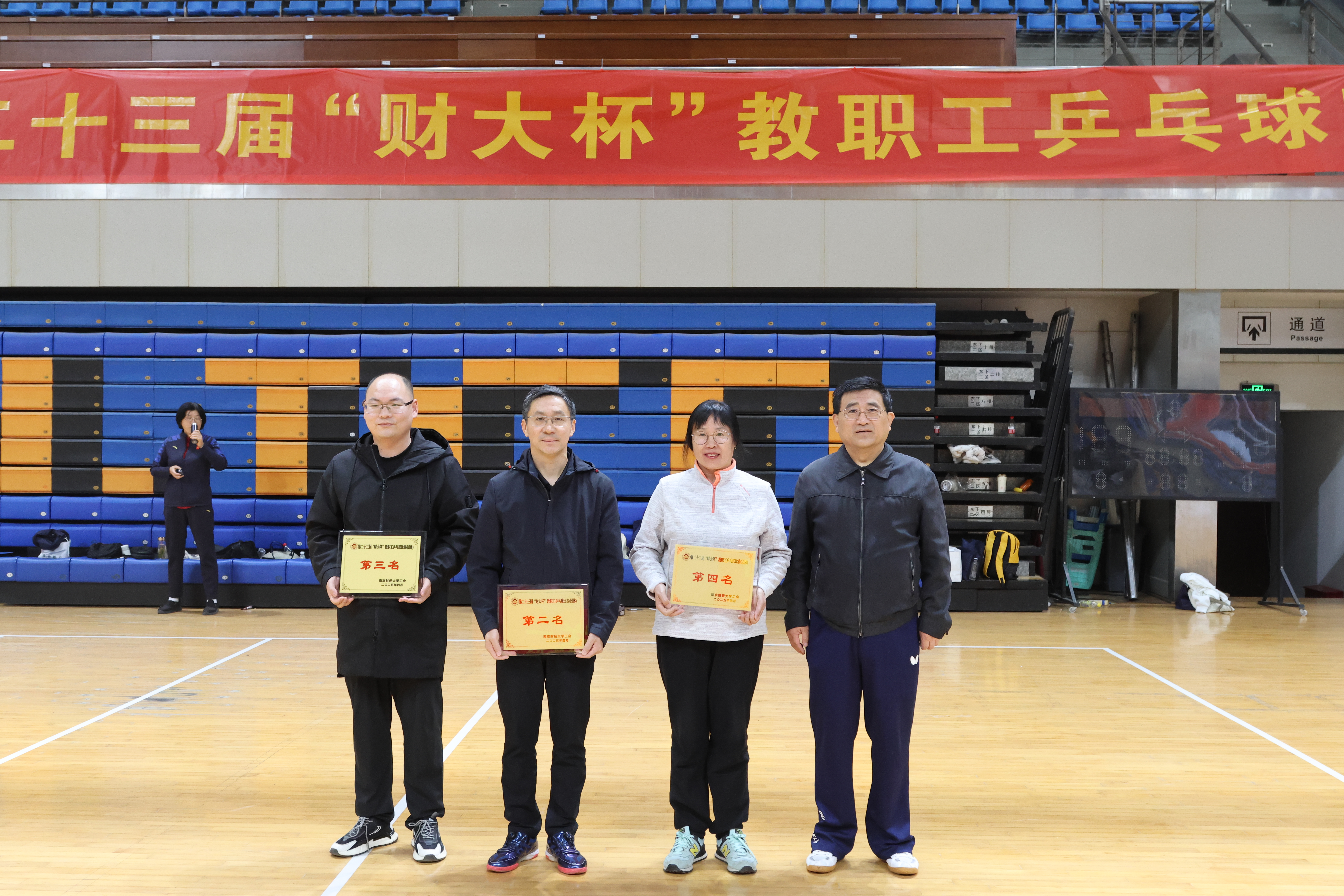 4月12日,由校工会、体育部联合主办的第二十三届"财大杯"教职工乒乓球比赛在仙林校区体育馆圆满落幕。本届赛事共吸引包括校领导代表队在内的24支队伍、近200名教职工运动员参与竞技。校党委书记张利民亲自代表校领导队参赛,并在赛场上为运动员们加油助威。党委常委、副校长李煜出席开幕式并致辞,校工会主席孙丹兵主持开闭幕式。